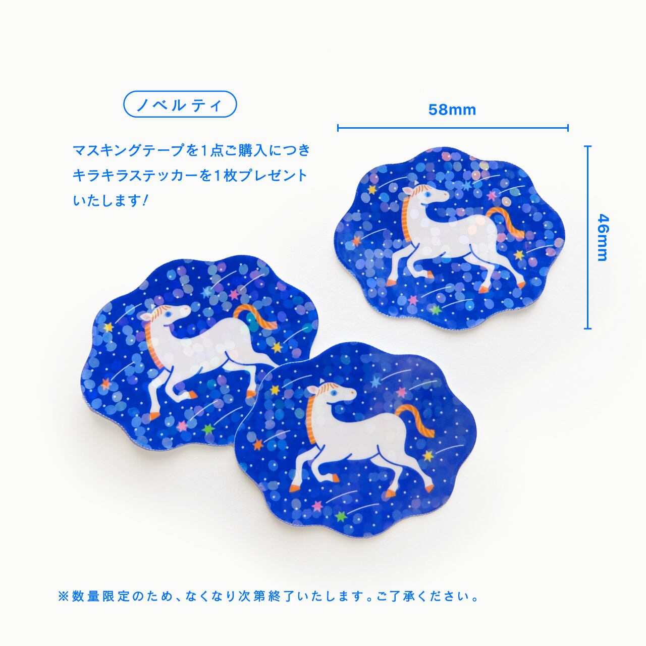 商品を1点ご購入いただくごとにキラキラステッカーを1枚プレゼントしています。数量限定のため、なくなり次第終了いたします。ご了承ください。