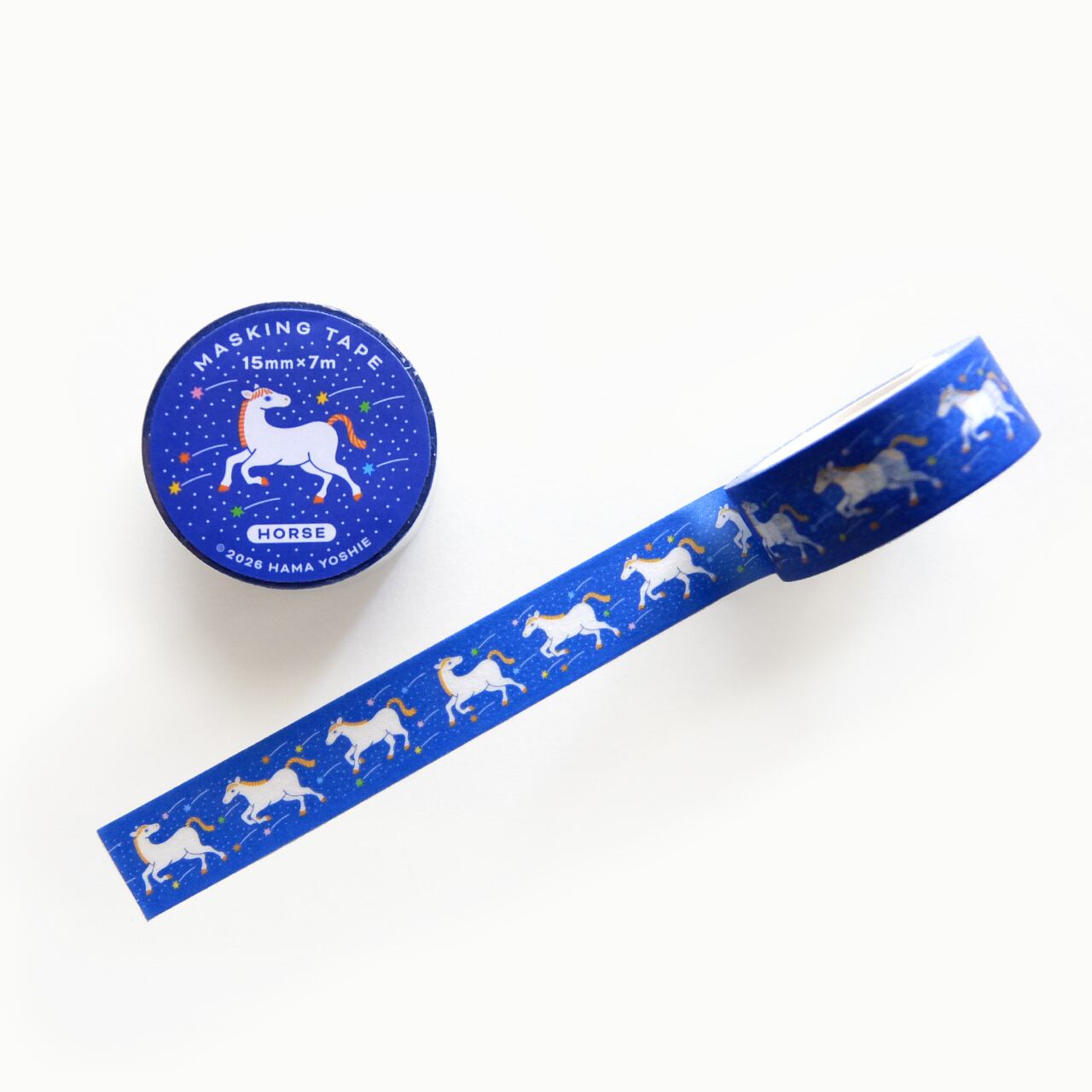 「流星群と馬」というイラスト作品をもとにデザインしたマスキングテープです。